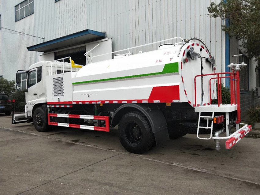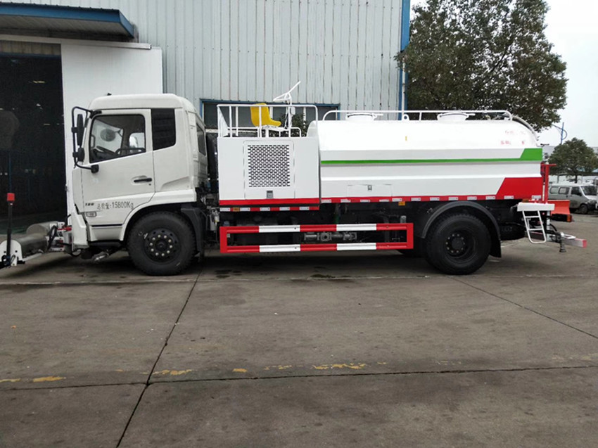 洒水车吸程≧7米,洒水宽度≧14-16米,射程≧25-40米,引水时间<5min,流量60m3/h。前冲(喷)、后洒、带侧喷(花洒)、带后工作平台、平台上安装绿化洒水高炮(炮喷射形状可调节:直冲、大雨、中雨、毛毛雨、雾状、可连续调节,360°旋转),配消防接口,自流阀,滤网,带自吸自排功能。配备大功率专用洒水泵,泵可自吸自排,安装过滤网,带消防接口,可通过消防栓进水,带自流阀,随车选装20米绿化卷盘,可喷洒农药,罐体金属漆。罐体有椭圆和方圆罐两种,可根据用户的要求定做