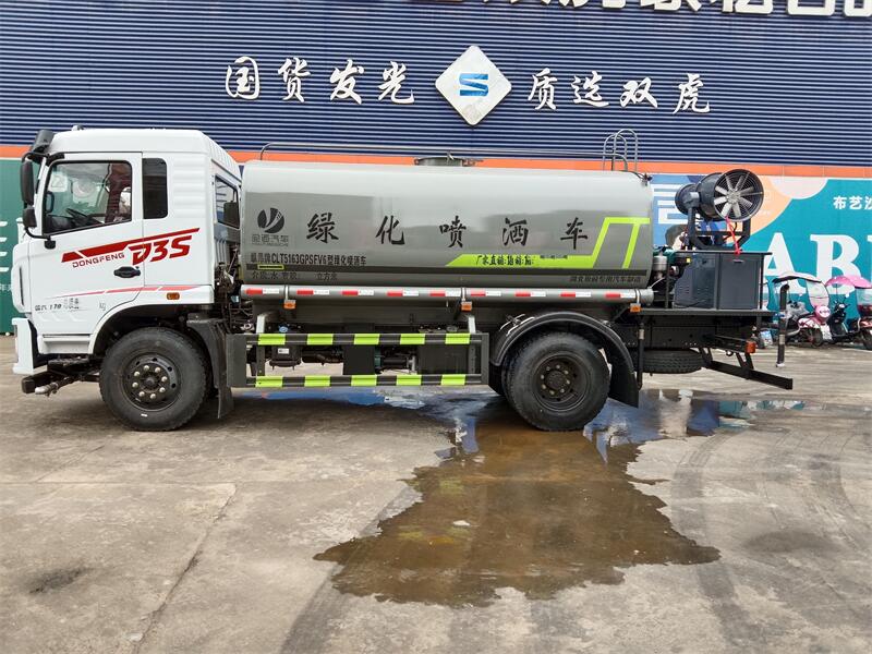东风12方雾炮洒水车上装配置: 1、罐体约为 12 方, 2、边灯带电,罐体尾部上方标配 2 个红色示宽灯, 3、标配前喷为鸭嘴直冲,标配后冲,用户可根据自己的需求,来调 整对冲位置。 4、冲孔平台(承载能力加强),炮筒后盖为定制型螺栓卡扣, 5、前喷、后冲、后洒、侧喷,绿化高炮开关球阀均采用 50 大通径 不锈钢球阀, 6、新式轴承式水炮,更加耐用, 7、60-90 型水泵, 8、防腐法兰垫片, 9、铝制后洒,不易炸开 10、罐体自动焊(美国林肯焊机及电源),拼板自动焊接,封头环 缝焊接,无气孔,焊缝美观。 11、侧护网、后保险杠、均为螺栓连接,方便拆卸,维修方便。 12、塑料挡泥板,替代铁挡泥板,更加轻便,用螺栓连接,方便拆 卸。 13、前部、后部主管连接处为 6 孔圆法兰,不易冲垫