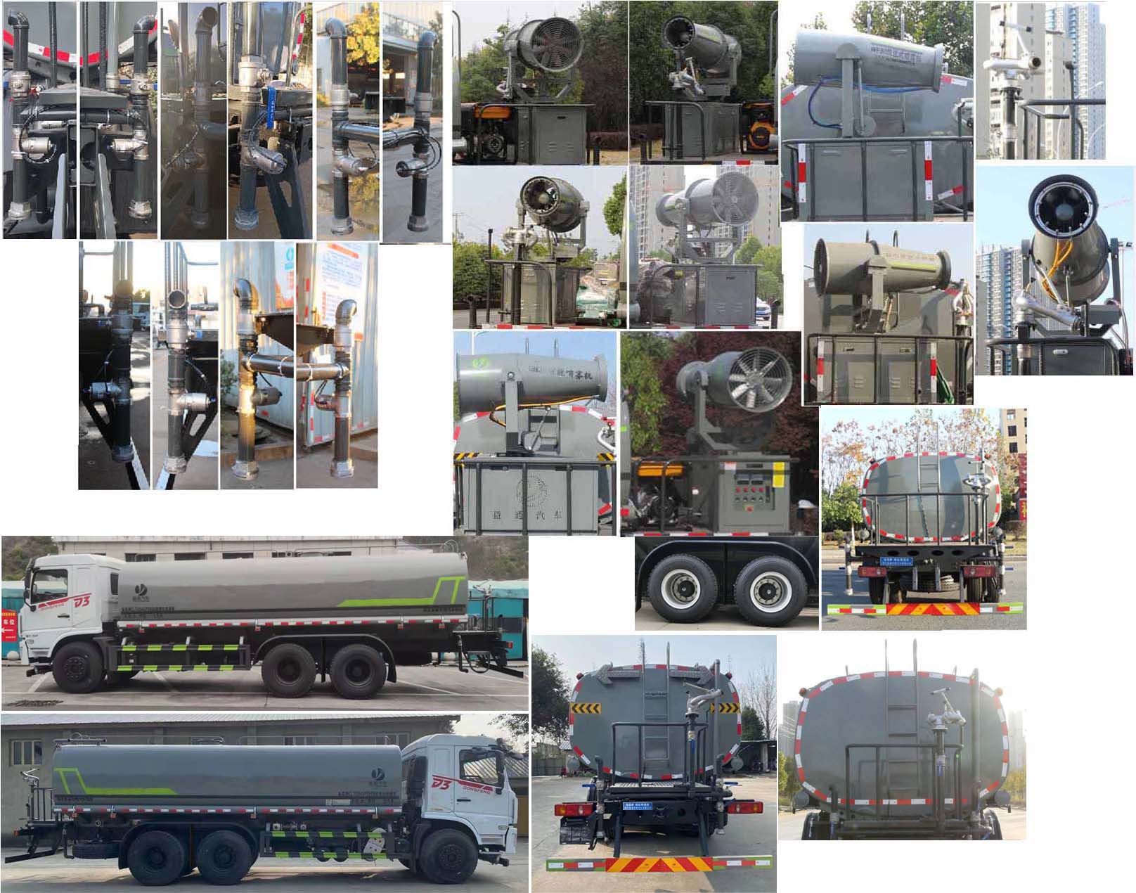 备注 | 该车主要用于城乡园林绿化喷洒;主要装置为罐体及喷洒装置;随底盘选装驾驶室,选装遮阳板上"东风商用车”字及不带遮阳板,选装喷雾装置样式,选装油箱出口位置;罐体总容量:14.81立方米;罐体有效容积:14.11立方米;罐体外形尺寸(长×长轴×短轴)(mm):6800×2390×1620,6800×2400×1450;侧、后防护材料均为:Q235,连接方式均为:螺栓连接,后部防护截面尺寸(mm):120×50,后部防护离地高度(mm):460;ABS型号/生产厂家:3631010-C2000/东科克诺尔商用车制动系统(十堰)有限公司.采用4350+1350(mm)轴距.选装水炮支架安装位置,选装高位花洒管道样式,选装自动球阀安装位置。选装挡泥板样式,选装箭头灯装置,选装后部样式。后部作业灯仅在作业时开启,车辆行驶过程中不可开启. | ||