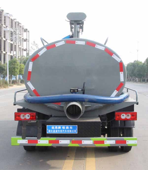 该车主要专用装置:罐体及吸粪装置,主要用于抽排运污水、粪便等液态污物;罐体总容量4.63立方米,罐体有效容积4.4立方米,罐体外形尺寸(长×长轴×短轴)(mm):3500×1650×1200.侧、后防护材料均为:Q235碳钢,连接方式均采用螺栓连接,后部防护截面尺寸(mm):120×50,后部防护离地高度(mm):420.ABS系统型号:ABS-E;生产企业:威伯科汽车控制系统(中国)有限公司.ABS系统型号:ABS-VI.E;生产企业:广州瑞立科密汽车电子股份有限公司.仅采用底盘3360mm轴距改装.选装后部出口样式.随底盘选装驾驶室.
