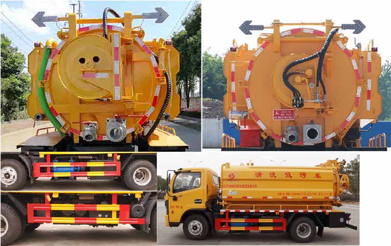 备注 | 清洗吸污车该车用于下水道排污及疏通,专用装置:罐体、吸污泵、清洗冲刷总成;罐体外形尺寸(总长×直径)(mm):3850×1450(前部1050mm为清水罐,后部2800mm为污水罐);污水罐总容量:3.94立方米,污水罐有效容积:3.75立方米,介质:液态污物,密度800千克/立方米;罐体两侧不规则箱体也为清水罐,尺寸为(长×宽×高(mm):3500×560×1000,清水罐总容量:3.15立方米,清水罐有效容积:3立方米,介质:水,密度1000千克/立方米,清水罐和污水罐为独立罐体,清洗功能时用清水罐,吸污功能时用污水罐,污水罐和清水罐不可同时满载,两罐不能同时满载使用;ABS型号/厂家:ABS型号:ABS/ASR-24V-4S/4M,厂家:襄阳东风隆诚机械有限责任公司.选装限速装置时,限速80km/h。侧/后防护材料Q235碳钢,侧防护采用螺栓连接,后防护采用焊接连接,后防护截面尺寸(宽×高)(mm)50×120,后部防护离地高度(mm):400.随底盘选装驾驶室,选装左右油箱安装位置..选装车辆侧面样式.选装后部卷盘样式,选装吸污口样式.仅采用底盘3390mm轴距改装,该车具有举升功能. | ||