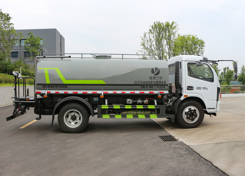 东风洒水车产品主要技术参数 序号 名称 型号、规格 1 整车型号 CLT5120GSSEQ6 型洒水车 2 发动机型号 D25TCIF1 3 发动机马力/功率 云内 150 马力/110KW 4 发动机排量 2499ML 5 变速箱 万里扬 6 档 6 轮胎规格 8.25 钢丝胎 7 轴距 3800 8 总质量 11995KG 9 整备质量 4600KG 10 额定载质量 7200KG 11 整车尺寸(长×宽×高) 7.1*2.25*2.8 12 罐体容积 9.3 方 13 燃料种类 柴油 14 排放标准 国六 15 水泵型号 40/50 16 罐体材质 Q235 碳钢