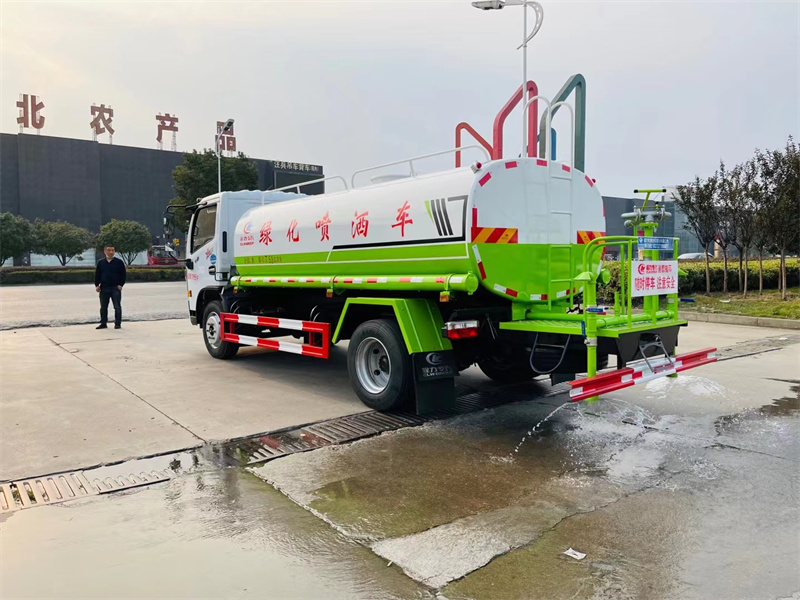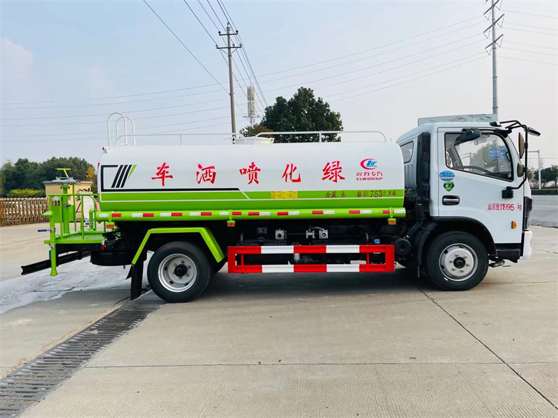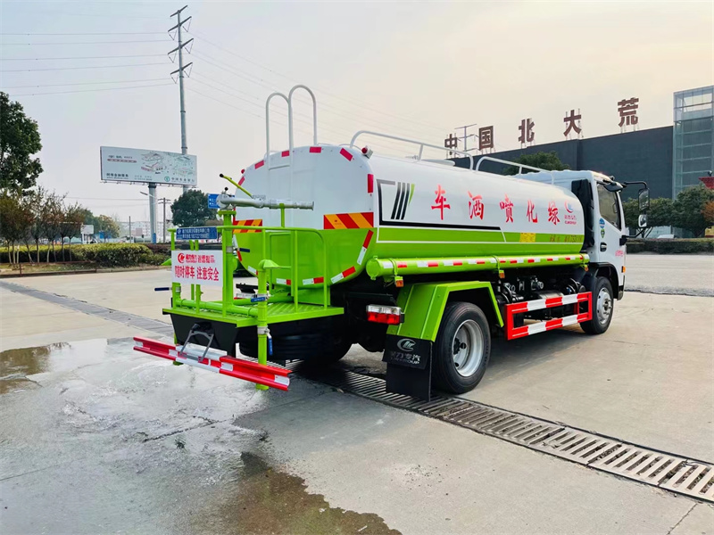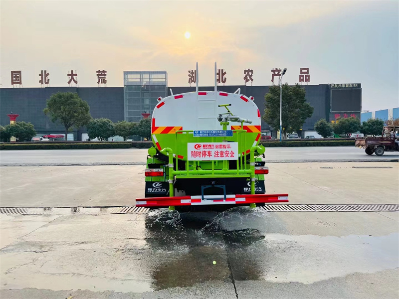 东风多利卡9.2吨洒水车性能简介:吸程≧7米,洒水宽度≧14-16米,射程≧25-40米,引水时间<5min,流量60m3/h。前冲(喷)、后洒、带侧喷(花洒)、带后工作平台、平台上安装绿化洒水高炮(炮喷射形状可调节:直冲、大雨、中雨、毛毛雨、雾状、可连续调节,360°旋转),配消防接口,自流阀,滤网,带自吸自排功能。安装30-80米雾炮,雾炮可以遥控操作,可以手动操作,按雾炮大小配多大功率发电机