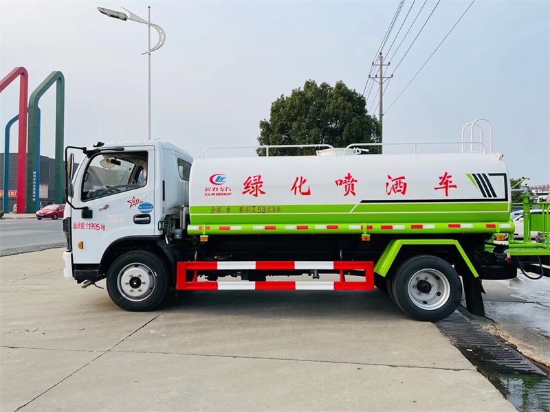 东风多利卡9.2吨洒水车配备大功率专用洒水泵,泵可自吸自排,安装过滤网,带消防接口,可通过消防栓进水,带自流阀,随车选装20米绿化卷盘,可喷洒农药,罐体金属漆。罐体有椭圆和方圆罐两种,可根据用户的要求定做