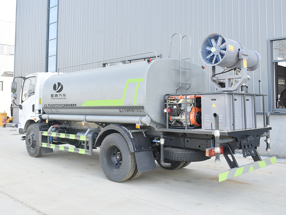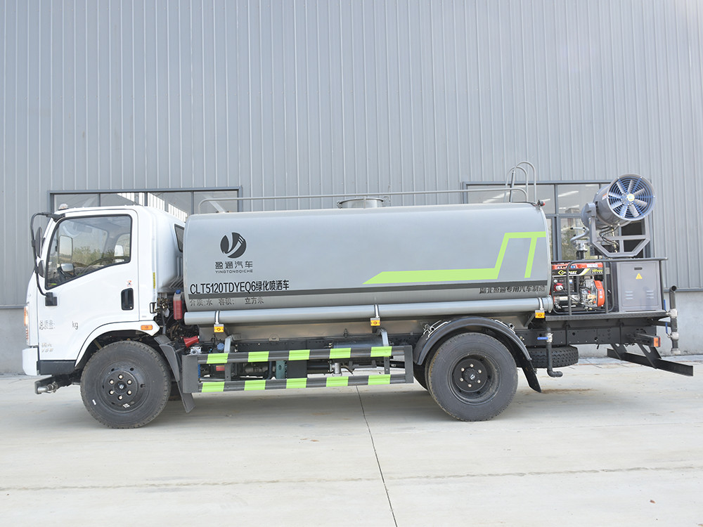东风10方抑尘洒水车配置: 发动机云内 150 马力(四缸),万里扬 6 档变速箱,前桥 2.2 吨, 后桥 4.2 吨,8.25 钢丝胎,轴距 3800,断气刹,ABS,空调,电动玻璃, 中控锁。2.上装配置: 1、罐体约为 10 方,可加装 30 型雾炮 2、边灯带电,罐体尾部上方标配 2 个红色示宽灯, 3、标配前喷为鸭嘴直冲,标配后冲,用户可根据自己的需求,来调 整对冲位置。 4、花纹防滑平台,炮筒后盖为定制型螺栓卡扣, 5、前喷、后冲、后洒、侧喷,绿化高炮开关球阀均采用 50 大通经 不锈钢球阀, 6、新式轴承式水炮,更加耐用, 7、40-50 型水泵, 8、防腐法兰垫片, 9、铝制后洒,不易炸开 10、罐体自动焊(美国林肯焊机及电源),拼板自动焊接,封头环 缝焊接,无气孔,焊缝美观。 11、侧护网、后保险杠、均为螺栓连接,方便拆卸,维修方便。 12、塑料挡泥板,替代铁挡泥板,更加轻便,用螺栓连接,方便拆 卸。 13、前部、后部主管连接处为 6 孔圆法兰,不易冲垫