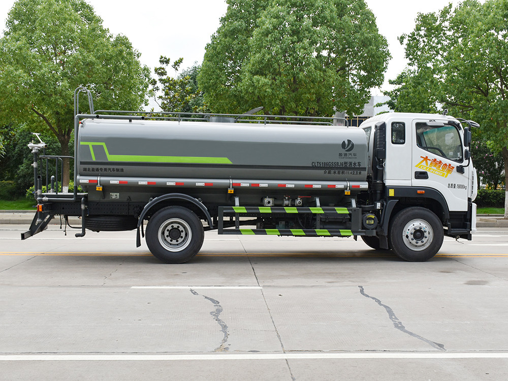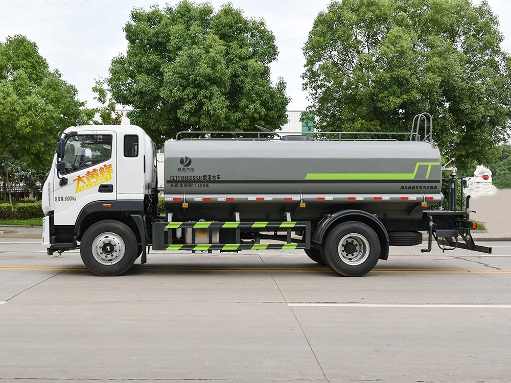 福田大黄蜂 14.2 方洒水车产品主要技术参数 序号 名称 型号、规格 1 整车型号 CLT5186GSSBJ6 型洒水车 2 发动机型号 YCS04200-68 3 发动机马力/功率 玉柴 200 马力/147KW 4 发动机排量 4156ML 5 变速箱 法士特 8 档(带高低速) 6 轮胎规格 10.00 钢丝胎 7 轴距 4500 8 总质量 18000KG 9 整备质量 6940KG 10 额定载质量 10865KG 11 整车尺寸(长×宽×高) 8.45*2.5*3.2 12 罐体容积 14.2 方 13 燃料种类 柴油 14 排放标准 国六 15 水泵型号 60/90 16 罐体材质 Q235 碳钢