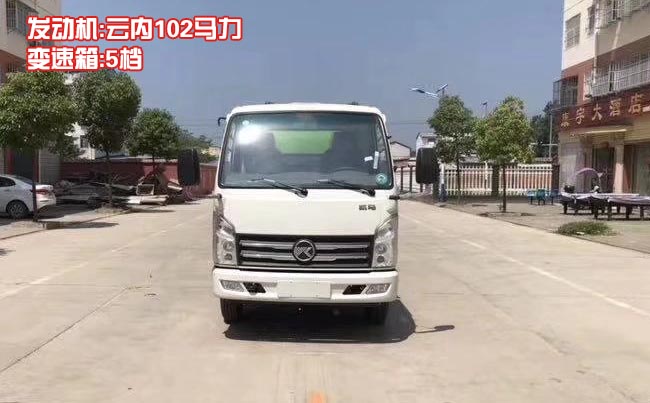 凯马蓝牌餐厨式垃圾车,新款五十铃级车身,云内102马力,5档变速箱,3.5吨后桥,6.50-16轮胎,油刹(可选气刹),方向助力,ABS,原厂空调。