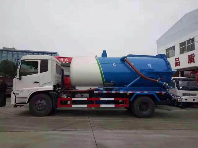 这款东风天锦的吸污车为圆柱形罐体结构,外观上跟一体式清洗吸污车是一样的,后盖部位不同,清洗吸污车是有水罐卷盘的,而吸污车是没有的,这款吸污车罐体选用优质碳钢制作,坚固不易变形,内外均做防腐处理,使用寿命长,罐体可液压举升,后盖可液压打开,卸料更快更方便,后盖顶部安装有高位警示灯,夜间开车比较方便,采用水循环式吸污泵,吸力更强,长时间作业不怕泵体发热,操作阀选用进口品牌,上装还标配视污窗、若干米长吸污管等配置。