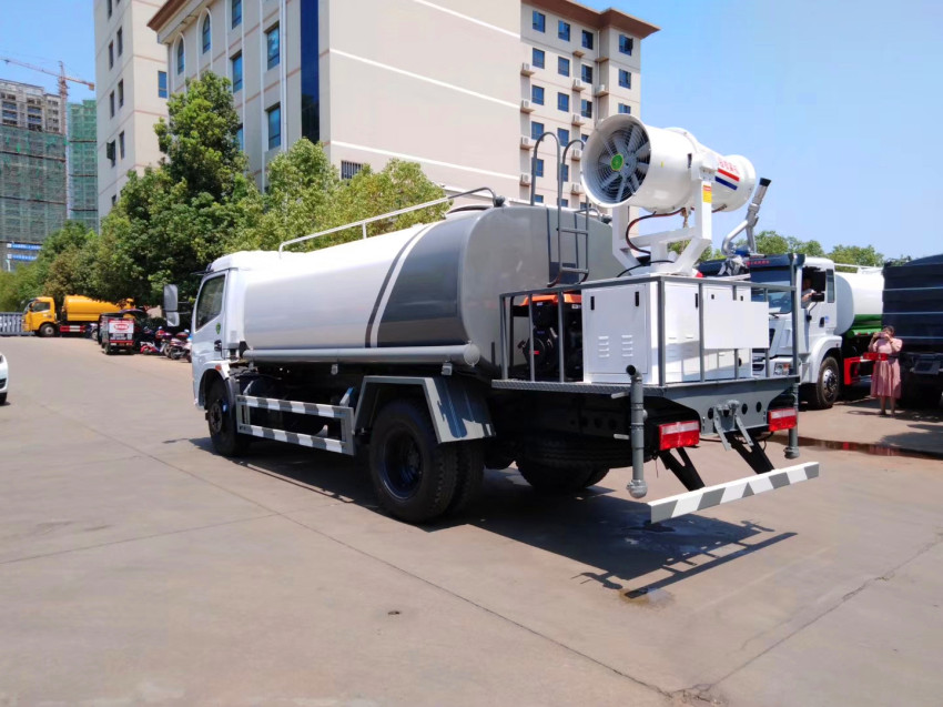 上装配置:罐体采用4毫米厚武钢产容积板焊接而成,内设防浪板,程力大功率洒水泵,可自吸水,加压排水,前冲15米宽,后洒压尘,侧喷花洒喷头,尾高绿化高位水炮,射程28米,可调节水柱、大中雨、毛毛雨等,可做临时消防灭火用。