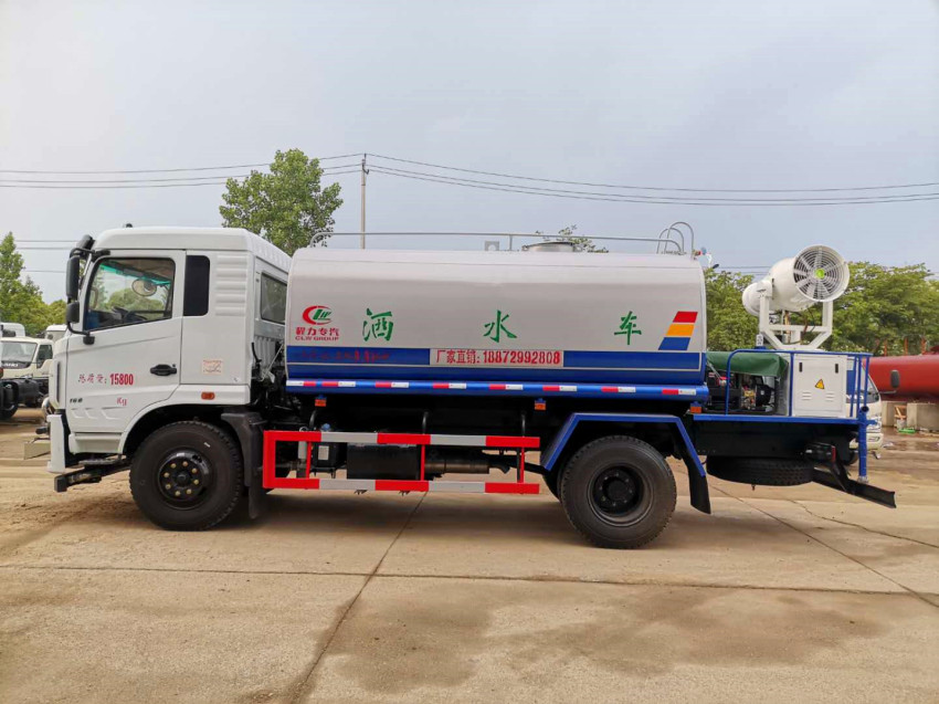 上装:罐体采用武钢优质钢材制作,专用功能;前冲,后洒,带侧喷,罐体后带工作平台,平台上安装绿化洒水高炮,高炮枪射程28米左右,可调雾状、直流状(大雨、中雨、毛毛雨),大功率洒水泵,泵可自吸自排,带自流阀,带消防接头,带过滤装置。