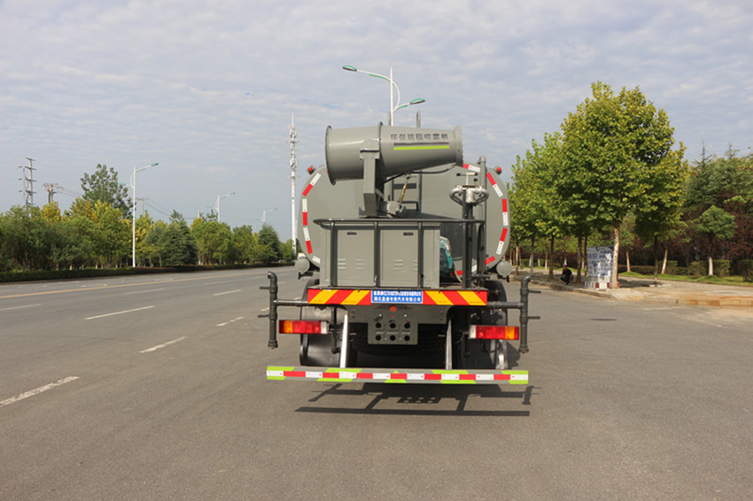 洒水车罐体用4 mm武钢碳钢板制作,罐体容积12立方,罐内隔板具有防波作用,专用自排自吸洒水泵,前冲、后洒、侧喷、后工作平台、360度可调节绿化水炮,自流阀、滤网、消防接口(可连接消防栓取水,可作应急消防用),罐前量管(观察罐内水位)、罐后爬梯、罐上罐口、带简易护栏、抽水管两根,罐体表面双层油漆工艺,罐内双层防腐!配大功率30米雾炮!其余标配!