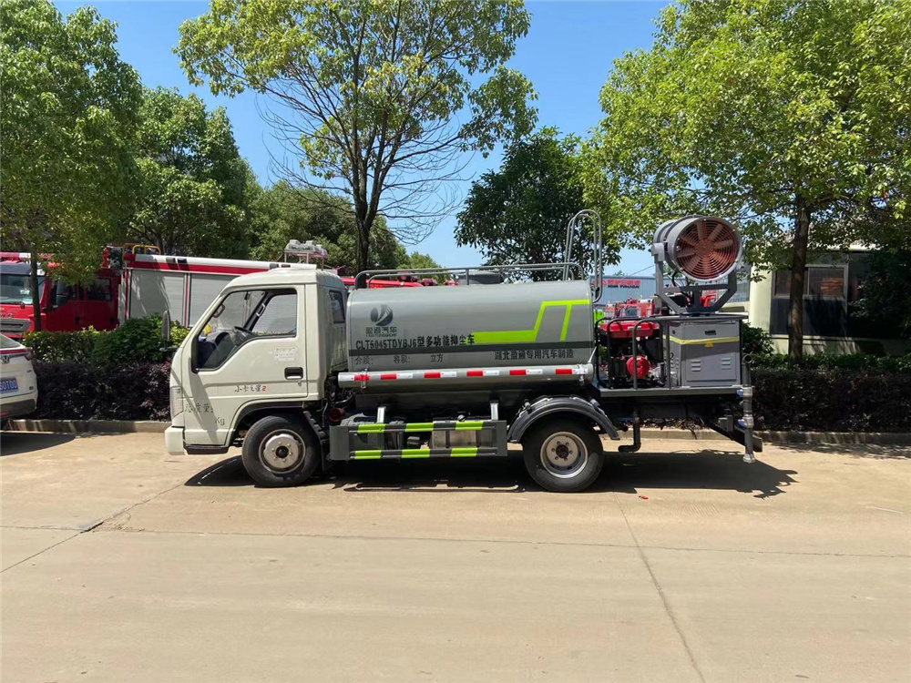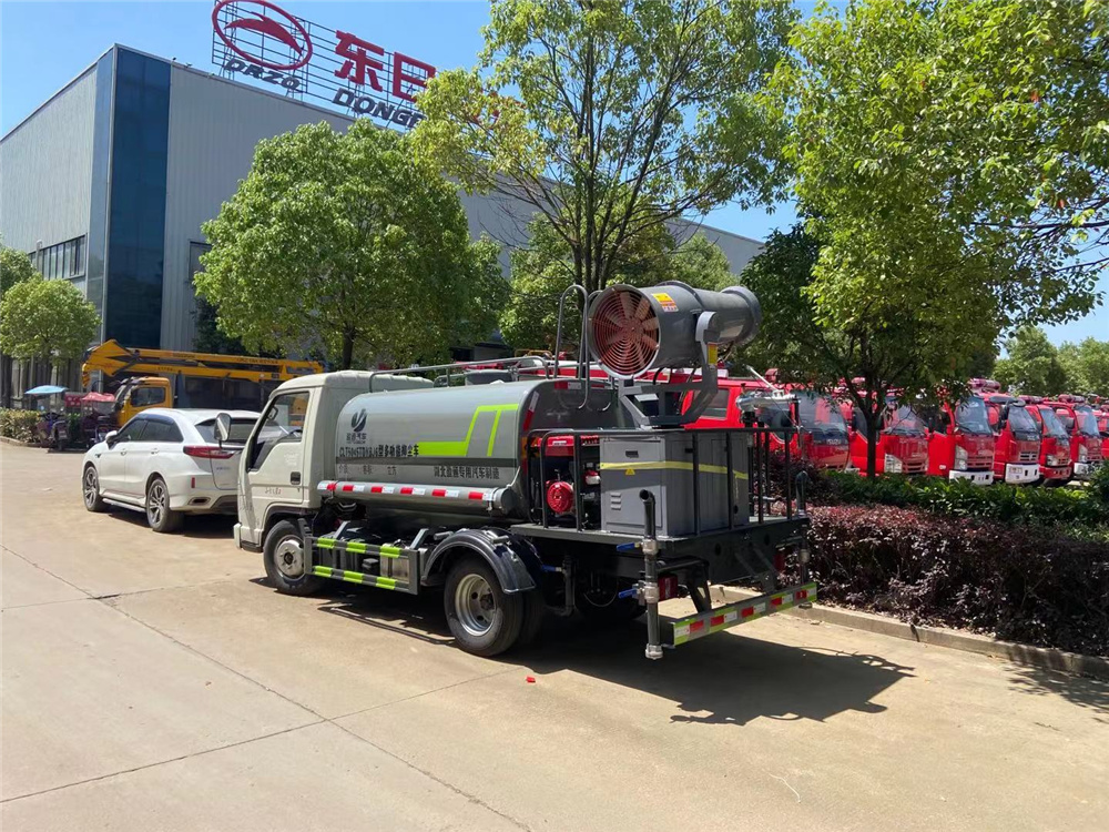 专用功能配置:罐体实际容积约为2.8立方米,采用武钢优质碳钢板卷压成型。配备专用洒水泵,自吸自排,前喷后洒、后对冲、侧喷、后工作平台及洒水高压炮。洒水泵自吸高度为6米左右,整车洒水宽度14米左右,后工作平台水炮可调成:直冲状、大雨、中雨、小雨、雾状、有效射程≥28米,整车带接头、水位计,自流阀及自吸功能。后平台主管道有一个一寸的浇花接口,附送2根3米水管,1个爬梯,两侧及后保险杠。