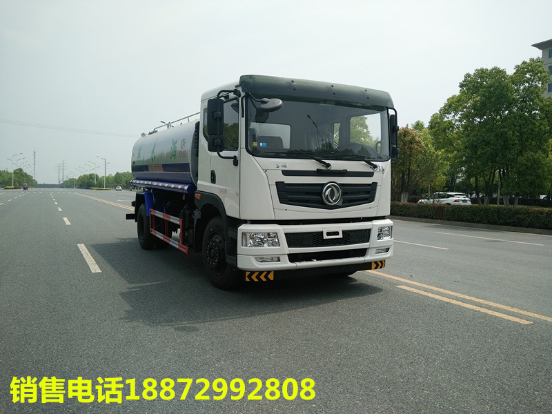 随底盘选装驾驶室;侧喷为选装件;品名:;密度:1000千克/立方米;有效容积:9.34立方米;轴距3950mm,罐体外形尺寸(×长轴×短轴)(mm):4600×2180×1390,外形尺寸长(mm)/前悬(mm)对应关系:7700/1250,7900/1450;轴距4500mm,罐体外形尺寸(×长轴×短轴)(mm):5200×2080×1290;外形尺寸长(mm)/前悬(mm)对应关系8250/1250,8450/1450;ABS型号为3631010-C2000,生产厂家为东科克诺尔商用车制动系统(十堰)有限公司;侧面防护装置材料材质:Q235,连接方式:焊接;后下部防护装置材料材质:Q235,连接方式:焊接,断面尺寸(×):30×120(mm),离地高度:500mm. 吸程7米,洒水宽度14-16米,射程25-30米,引水时间<5min,流量60m3/h。前冲()、后洒、带侧喷(花洒)、带后工作平台、平台上安装绿化洒水高炮(炮喷射形状可调节:直冲、大雨、中雨、毛毛雨、雾状、可连续调节,360°旋转),配消防接口,自流阀,滤网,带自吸自排功能配备大功率专用洒水泵,泵可自吸自排,安装过滤网,带消防接口,可通过消防栓进水,带自流阀,随车选装20米绿化卷盘,可喷洒农药,罐体金属漆。罐体有椭圆和方圆罐两种,可根据用户的要求定做