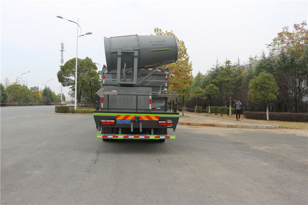 3、后平台可加装50米、60米、80米、100米全自动柴油雾炮机组;可喷洒农药,防役消毒,工地喷雾,拆迁降尘多功能使用。