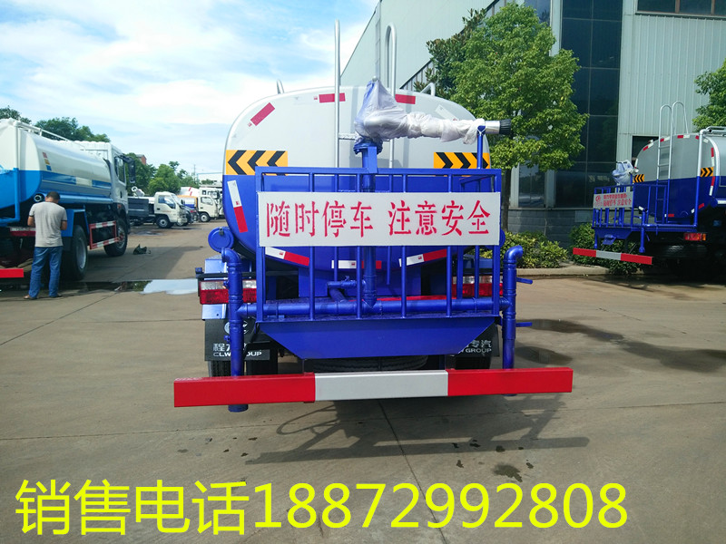 1、随底盘选装驾驶室前面罩以及前雾灯。2、罐体有效容积:4.06立方米,罐体外形尺寸(长×长轴×短轴关系为(mm): 3400×1600×1100, 吸程≧7米,洒水宽度≧14-16米,射程≧25-30米,引水时间<5min,流量60m3/h。前冲(喷)、后洒、带侧喷(花洒)、带后工作平台、平台上安装绿化洒水高炮(炮喷射形状可调节:直冲、大雨、中雨、毛毛雨、雾状、可连续调节,360°旋转),配消防接口,自流阀,滤网,带自吸自排功能。配备大功率专用洒水泵,泵可自吸自排,安装过滤网,带消防接口,可通过消防栓进水,带自流阀,随车选装20米绿化卷盘,可喷洒农药,罐体金属漆。罐体有椭圆和方圆罐两种,可根据用户的要求定做 发动机可选,云内,朝柴 ,锡柴,全柴
