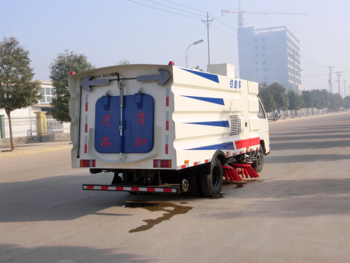 1.采用吸扫混合的方式收集垃圾,湿式除尘、电液控制,液压倾翻卸料的作业方式对路面进行清扫作业。