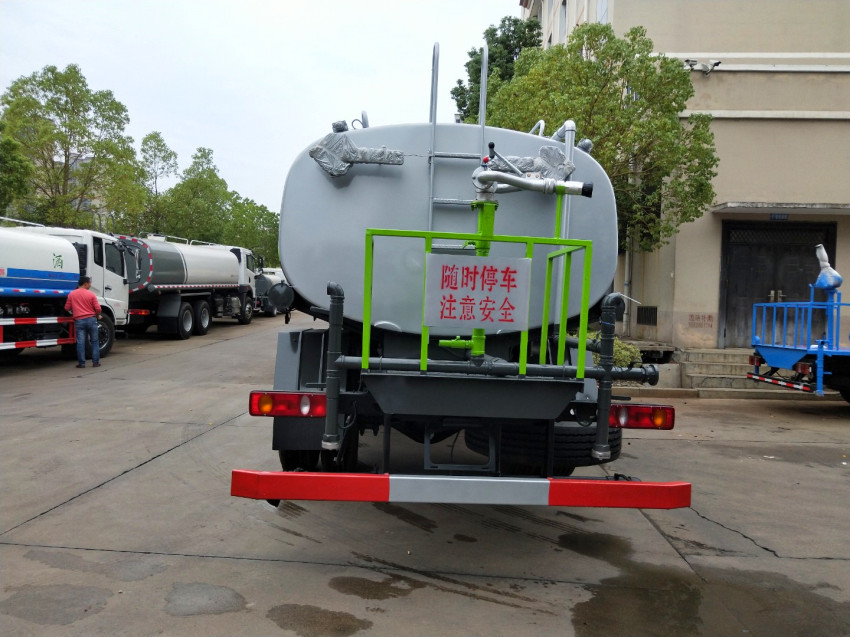配备大功率专用洒水泵,泵可自吸自排,安装过滤网,带消防接口,可通过消防栓进水,带自流阀,随车选装20米绿化卷盘,可喷洒农药,罐体金属漆。罐体有椭圆和方圆罐两种,可根据用户的要求定做