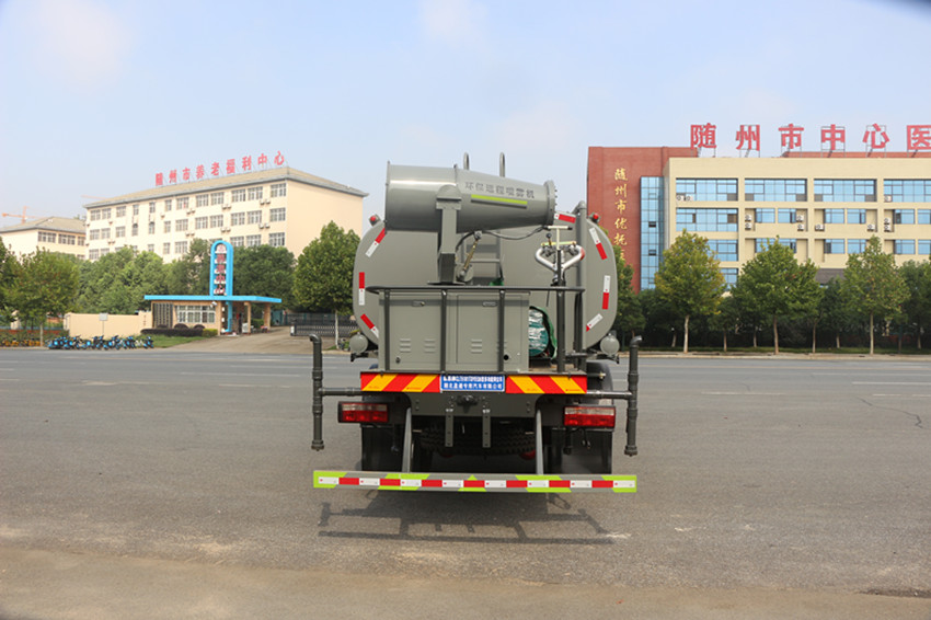 罐体容积可做12一15立方,上装标准配置可为:前喷,后洒,后位花酒带侧喷,后置加宽工作平台带高炮。(根据用户的不同需求,可以在罐体尾部工作平台上安装30一50米雾炮,喷药装置药盘,室内操作的大鸭嘴,本田泵,长警灯等)。