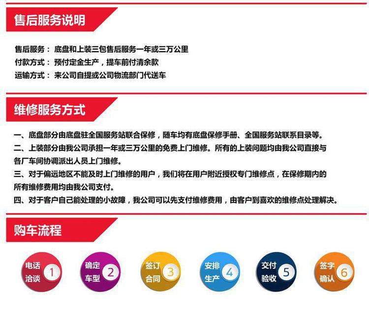 底盘配置:该车采用国六新款东风福瑞卡3800mm轴距底盘生产,搭载云内150马力柴油发动机(可选用朝柴170马力或云内170马力),8.25钢丝胎,万里扬6档变速箱,原厂冷暖空调,发动机型号不同底盘配置略有差异,实际请以购车合同为准!