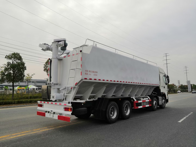 国六柳汽乘龙前四后八散装饲料运输车/40方散装饲料车