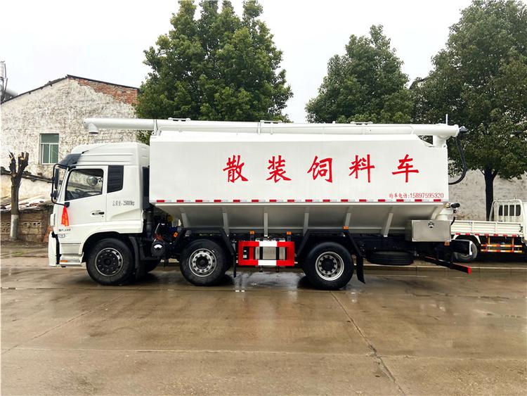 东风多利卡12方散装饲料运输车:底盘配置:东风多利卡饲料车专用底盘,朝柴156马力发动机,国五排放,6档变速箱,3800轴距,280双层大梁,前桥3吨,后桥 5吨(加强型前后钢板弹簧),8.25R16钢丝胎,电动门窗,中控锁,ABS,空调,罐体采用4mm优质钛钢板,整车3条电动绞龙卸料,(由3个5.5KW电机带动蛟龙工作,顶部蛟龙液压控制举升,可左右旋转180度),罐体内分为三个仓,可独立控制各分仓卸料顺序和速度 东风多利卡12方散装饲料运输车 罐体配置:有效容积12方,可装6-8吨,标配3仓,电动绞龙卸料,卸料管倾斜70度,  垂直卸料高度8.5米,整车尺寸:695022003400;整车卸料完用时20分钟。