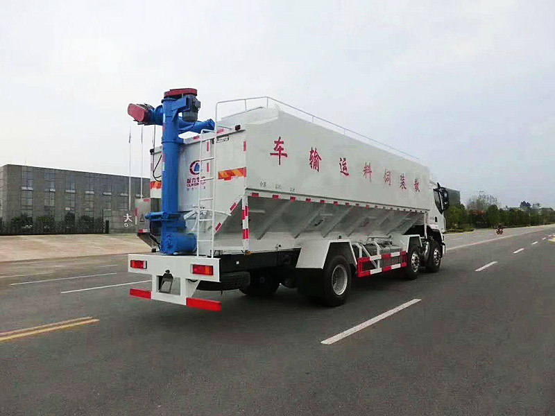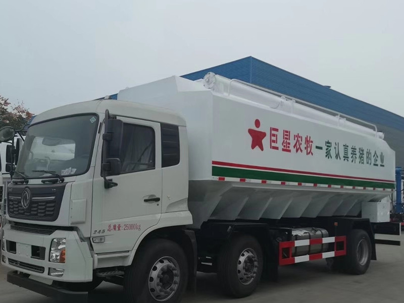 东风柳汽乘龙28方单桥散装饲料运输车,28立方14吨,玉柴6缸200马力发动机,超强爆发力,法士特8档变速箱带高低档,10.00钢丝胎!