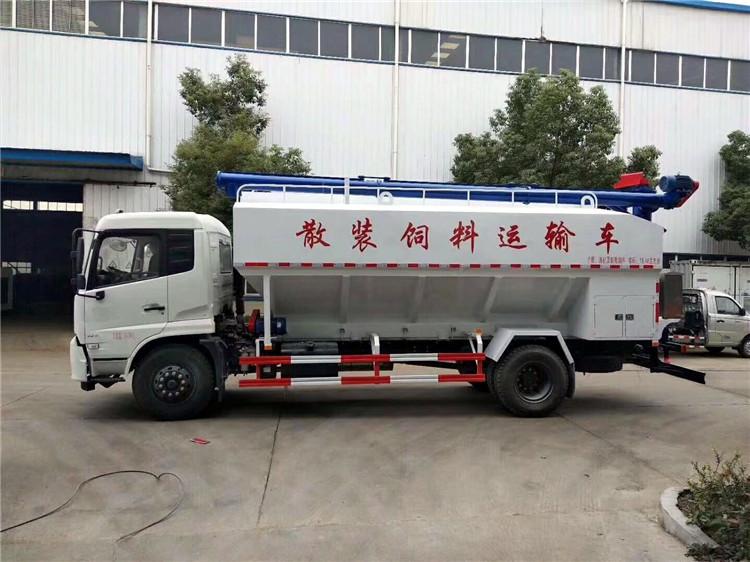 东风天锦单桥散装饲料车上装配置:罐体材质采用4mm优质碳钢板,整车3条绞龙,有3个5.5KW电机(万邦 西门子)带动,顶部绞龙液压控制举升,可左右旋转180°,罐体可根据用户要求做多个独立分仓,可独立控制各分仓卸料顺序和速度,卸料管倾斜60度,垂直卸料高度8.5米,整车卸料完用时20分钟。(绞龙长度 6.86X 三角函数0.87+整车高度-500=垂直卸料高度)