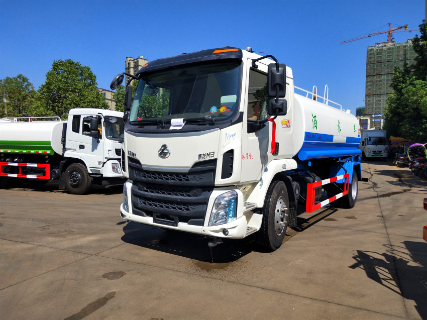 东风柳汽12方洒水车罐体容积为12立方 洒水车,罐体钢板为4mm碳钢Q235材质,罐内隔板具有防波作用,以减轻汽车行驶时罐体液体冲击,罐体及整车外形尺寸按照公告。带大功率专用洒水泵,泵可自吸自排,整车前冲、后洒、侧喷、带65消防接口,后平台带绿化洒水炮,洒水炮可全方位旋转,可连续调成直冲状、大雨、小雨、毛毛雨;前封头带水位计,后平台主管路带1寸浇花接口,后爬梯。平台后部带小安全告知牌:“随时停车,注意安全”,带两根水管及阴阳端。罐体颜色:上白/下蓝,银灰/银蓝,罐体两侧喷“洒水车、绿化喷洒车”字样,贴反光标示。洒水车可加装前冲后洒气动阀驾驶室控制、可加装雾炮机组发电机组喷雾降尘装置、车头可加装推雪雪铲、雪滚装置街道、公路除雪等。东风柳汽12方洒水车