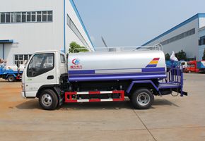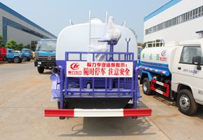 洒水车性能简介:吸程≧7米,洒水宽度≧14-16米,射程≧25-40米,引水时间<5min,流量60m3/h。前冲(喷)、后洒、带侧喷(花洒)、带后工作平台、平台上安装绿化洒水高炮(炮喷射形状可调节:直冲、大雨、中雨、毛毛雨、雾状、可连续调节,360°旋转),配消防接口,自流阀,滤网,带自吸自排功能