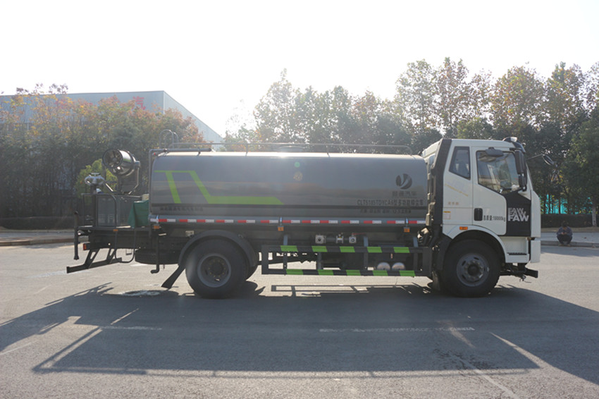 性能简介:吸程≧7米,洒水宽度≧14-16米,射程≧25-40米,引水时间<5min,流量60m3/h。前冲(喷)、后洒、带侧喷(花洒)、带后工作平台、平台上安装绿化洒水高炮(炮喷射形状可调节:直冲、大雨、中雨、毛毛雨、雾状、可连续调节,360°旋转),配消防接口,自流阀,滤网,带自吸自排功能。安装30-80米雾炮,雾炮可以遥控操作,可以手动操作,按雾炮大小配多大功率发电机