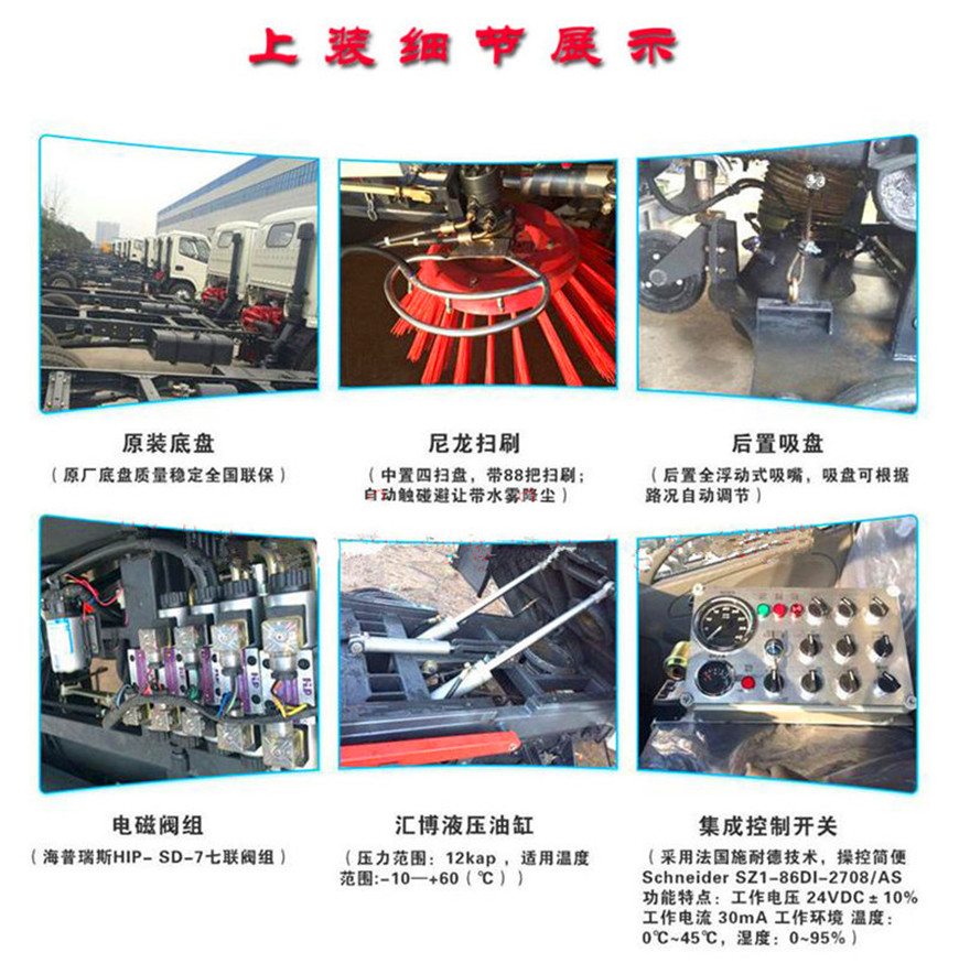 9. 东风8方洗扫车左右立扫为单扫盘,减少了扫刷的数量和扫刷消耗量,能降低使用成本。扫刷上加装喷水装置,用于喷雾降尘。左右立扫分开控制,可实现右扫和全扫等不同的作业模式。