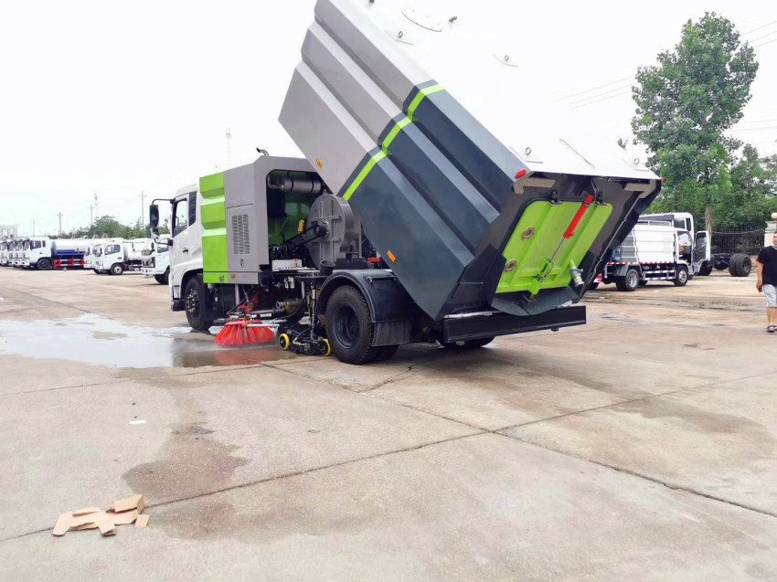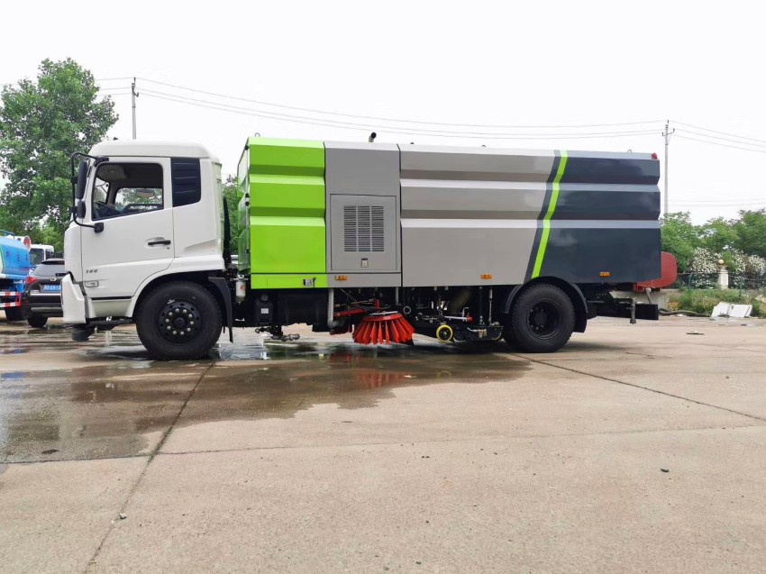 该车集扫路车、洒水车和高压清洗车功能于一体,具备路面清扫、路面洗刷、高压清洗、低压冲洗、路缘石洗刷、垃圾收集、污水回收、喷雾降尘和道路隔离墙清洗、小广告清洗等多种作业功能。