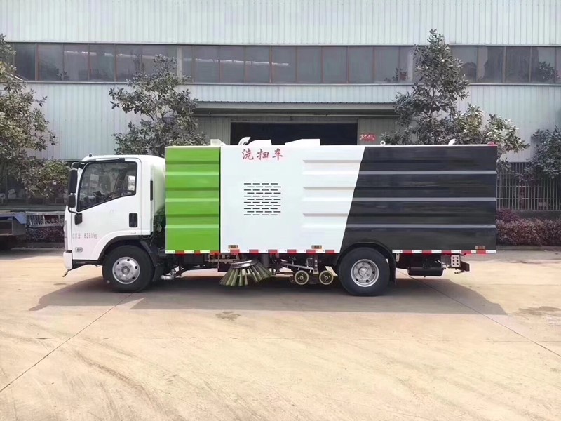 五十铃洗扫车配置中置两扫刷盘,中置宽吸盘、高压喷水杆,在作业过程中可完成垃圾及污水的一次性回收,车辆具有道路清扫、清洗,路边石洗扫、路面洒水 及喷雾抑尘,高压水枪清洗等多种功能。
