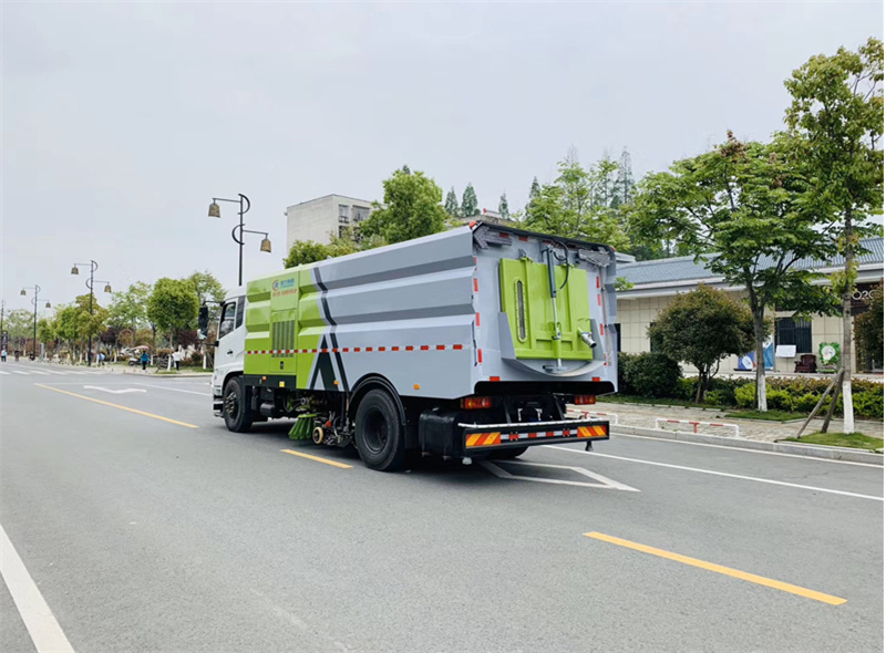Ø CLW5180TXSD6型洗扫车具有路面清洗、路面清扫、路缘清洗、路缘和路缘石立面洗刷、低压冲洗、喷雾除尘等多功能。有“全洗扫”、 “左洗扫”、 “右洗扫”、 “全扫”、 “左扫”、 “右扫”等多种作业模式可选择。选择“全洗扫”模式清洗广场和路面,清洗效率高效果好,洗净率达90%以上。选择“左洗扫”或“右洗扫”模式清洗路面和路缘、洗刷路缘石立面。需要进行路面清扫或路面保洁作业时,可选择扫路模式。需要喷雾除尘时,可开启喷雾装置,进行喷雾除尘作业。可以像洒水车一样对路面进行低压冲洗作业。
