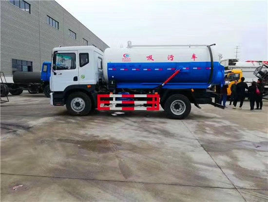 吸污车工作原理和吸粪车相同,但吸污车后盖可以开启,罐体可以举升。加大了排污的方便性,故吸污车主要是抽一些粘稠类污物,如河道淤泥,下水道,建筑泥浆等。