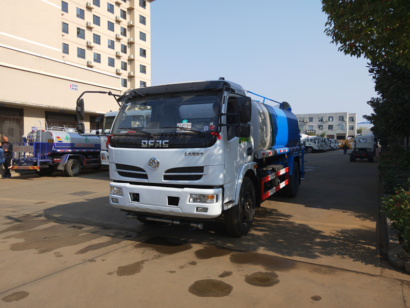 洒水车底盘选装驾驶室;品名:水,密度:1000千克/立方米,有效容积5立方米,洒水车罐体尺寸(长×宽×高)(mm):3400×1600×1100;ABS吸程≧7米,洒水宽度≧14-16米,射程≧25-30米,引水时间<5min,流量60m3/h。前冲(喷)、后洒、带侧喷(花洒)、带后工作平台、平台上安装绿化洒水高炮(炮喷射形状可调节:直冲、大雨、中雨、毛毛雨、雾状、可连续调节,360°旋转),配消防接口,自流阀,滤网,带自吸自排功能。 加装30雾炮,雾炮可以手动操作,可遥控操作,配7千瓦发电机,双鸭山洒水车销售价格报价,东风洒水车产品价格