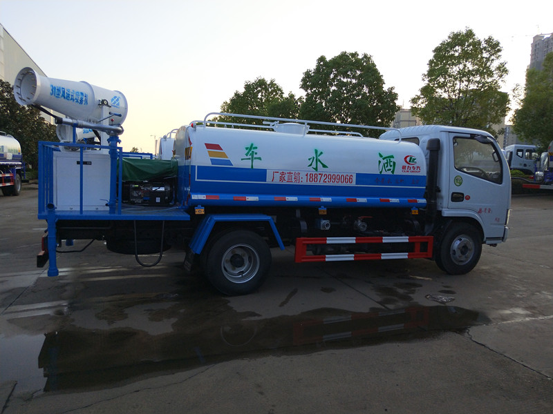 东风5吨洒水车-喷雾车-程≧7米,洒水宽度≧14-16米,射程≧25-30米,引水时间<5min,流量60m3/h。前冲(喷)、后洒、带侧喷(花洒)、带后工作平台、平台上安装绿化洒水高炮(炮喷射形状可调节:直冲、大雨、中雨、毛毛雨、雾状、可连续调节,360°旋转),配消防接口,自流阀,滤网,带自吸自排功能。配备大功率专用洒水泵,泵可自吸自排,安装过滤网,带消防接口,可通过消防栓进水,带自流阀,随车选装20米绿化卷盘,