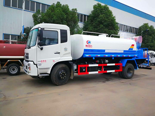 该车主要用于城乡园林绿化洒水、喷药等;主要装置为水罐及泵.罐体有效容积9.5立方米.罐体外形尺寸(长×长轴×短轴)(mm)4300×2200×1350;4250×2280×1430;3800×2300×1450;仅采用3950mm轴距,整车长度/前悬/后悬(mm)的对应关系为: 7500/1250(1450)/2300(2100),可选装风机;7950/1450/2550,后部安装风机.侧、后防护材料为Q235B,侧、后防护与车架均螺栓连接,后部防护装置断面尺寸(宽×高)50×100(mm),后部防护离地高度:480mm.随底盘选装驾驶室.ABS型号为3631010-C2000,生产厂家为东科克诺尔商用车制动系统(十堰)有限公司.