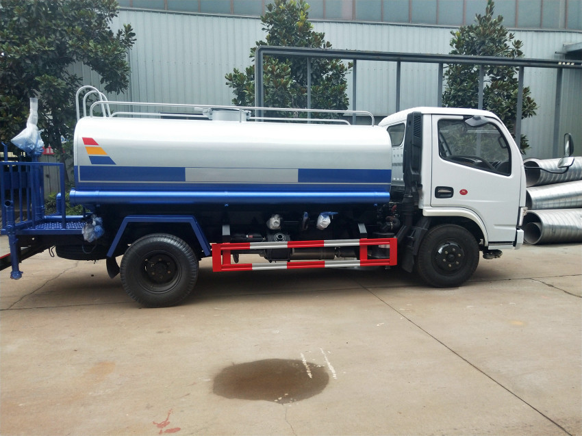 5吨洒水车上装配置:罐体容积5立方,罐体材质为4mm厚武钢优质板材,配备洒水泵,洒水高炮,工作平台,取力器,前冲,后洒,万向嘴,水泵垂直吸程≧7米,前冲洒水宽度≧14米,绿化水炮射程≧35米,自流阀、滤网、消防接口(可连接消防栓取水,可作应急消防用)喷头,带自吸自排功能。可加装洒药盘、药泵、罐内防腐防锈、多方位进出水接头、电磁阀、气动阀等先进设施,以满足不同用户需求。罐体采用机器压板一次性成型技术,采用先进旋边机,罐体包罐机工艺保证了罐体制作的精度和美观。全国独有烤漆工艺,防腐除锈,多层底漆、面漆喷涂。