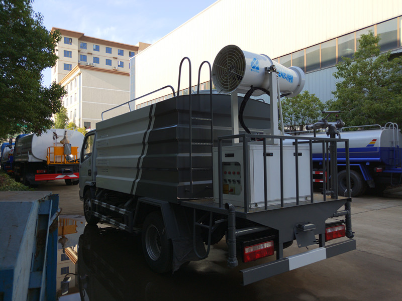 抑尘车吸程≧7米,洒水宽度≧14-16米,射程≧25-40米,引水时间<5min,流量60m3/h。前冲(喷)、后洒、带侧喷(花洒)、带后工作平台、平台上安装绿化洒水高炮(炮喷射形状可调节:直冲、大雨、中雨、毛毛雨、雾状、可连续调节,360°旋转),配消防接口,自流阀,滤网,带自吸自排功能。配备大功率专用洒水泵,泵可自吸自排,安装过滤网,带消防接口,可通过消防栓进水,带自流阀,此车尾部加装大功率农药喷洒炮,喷洒状态雾状,有效射程15-45米,外部平台带独立的机组。