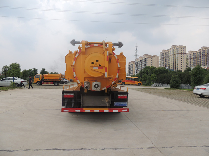 东风清洗吸污车清洗部分:清洗罐采用5mm武钢碳钢制作,容积约2.7方,带视水管,安装德国品孚高压清洗泵,压力22Mpa,流量215L/min,带60米内径19mm清洗钢丝软管,标配十个不同口径合金喷头,卷管力为1800N,卷管速度0-25m/min,推进力度大于180N,可通直径10-80公分水管及下水道管道。