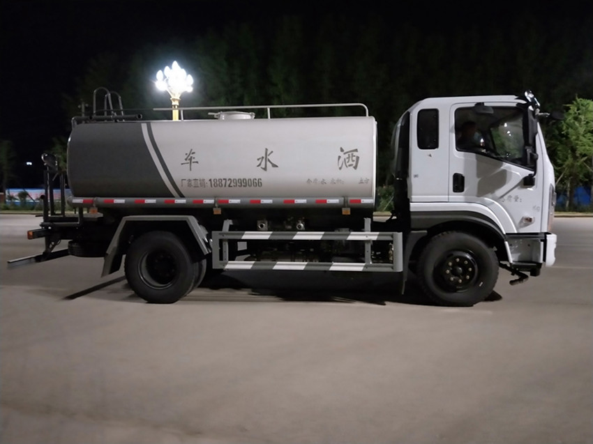 配备大功率专用洒水泵,泵可自吸自排,安装过滤网,带消防接口,可通过消防栓进水,带自流阀,随车选装20米绿化卷盘,可喷洒农药,罐体金属漆。罐体有椭圆和方圆罐两种,可根据用户的要求定做