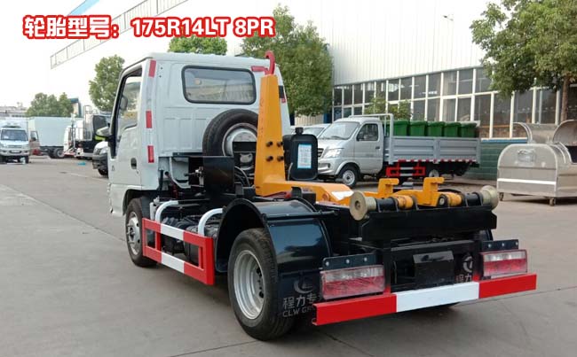 可拉2~3立方米勾臂垃圾箱,高强度勾臂,双缸液压,长源油泵,扬州多路阀,尾部滑轮、箱体锁紧装置。