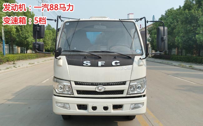时风风顺挂桶式垃圾车,风顺加宽驾驶室,一汽88马力发动机,5档变速箱,6.50-16轮胎,带方向助力,油刹。
