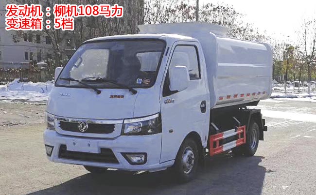 箱体容积3~4立方米,箱体材料为碳钢,边三底四,国产液压系统、多路阀,侧面挂桶提升机构,箱体双杠液压举升卸料,驾驶室外部操作,后门手动开启。