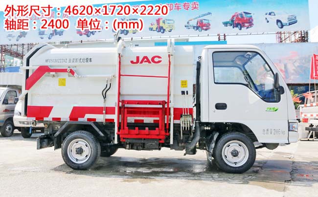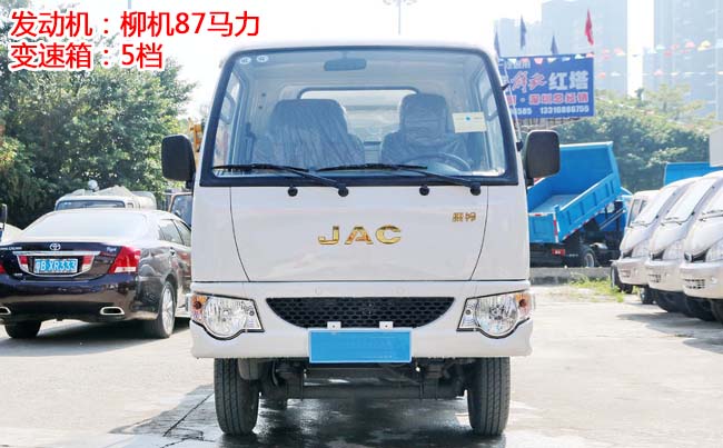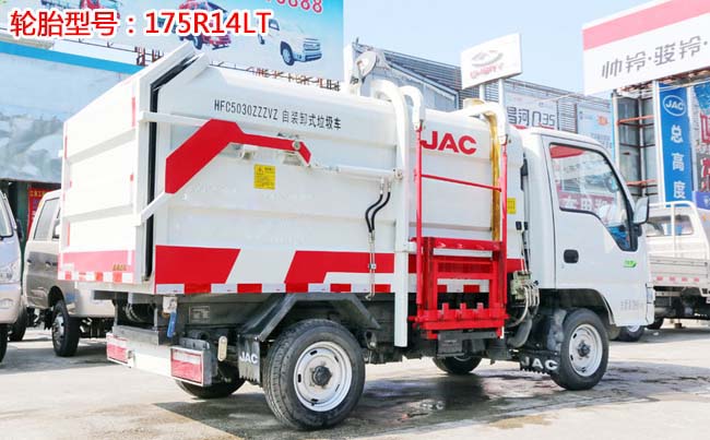 江淮康铃X1挂桶式垃圾车,柳汽87马力,5档变速箱,1.4T后桥,2400轴距,175R14LT(后单胎),带暖风、空调、可调方向盘、电预热、电熄火、不翻转、金属漆。