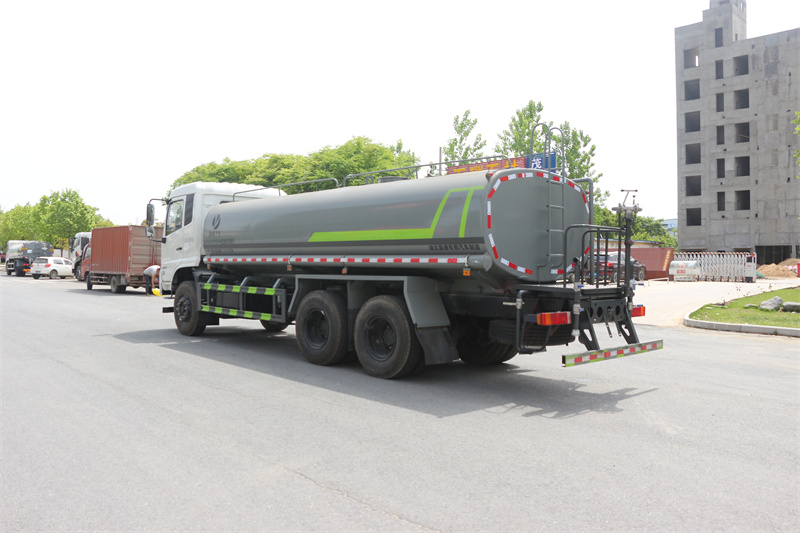 二.产品配置 1.底盘配置: 驾驶室东风天锦 D530-VR,发动机龙擎 260 马力,大同 7 档, 速比 5.143,轴距 4350+1350 mm,东风德纳桥:前桥 4.5T / 后桥 10T ×2,轮胎 11.00R20 钢丝胎,东风原厂空调,中控,电动玻璃2.上装配置: 1、罐体约为 22.3 方, 2、边灯带电,罐体尾部上方标配 2 个红色示宽灯, 3、标配前喷为鸭嘴直冲,标配后冲,用户可根据自己的需求,来调 整对冲位置。 4、冲孔平台(承载能力加强),炮筒后盖为定制型螺栓卡扣, 5、前喷、后冲、后洒、侧喷,绿化高炮开关球阀均采用 50 大通经 不锈钢球阀, 6、新式轴承式水炮,更加耐用, 7、60-90 型水泵, 8、防腐法兰垫片, 9、铝制后洒,不易炸开 10、罐体自动焊(美国林肯焊机及电源),拼板自动焊接,封头环 缝焊接,无气孔,焊缝美观。 11、侧护网、后保险杠、均为螺栓连接,方便拆卸,维修方便。 12、塑料挡泥板,替代铁挡泥板,更加轻便,用螺栓连接,方便拆 卸。 13、前部、后部主管连接处为 6 孔圆法兰,不易冲垫