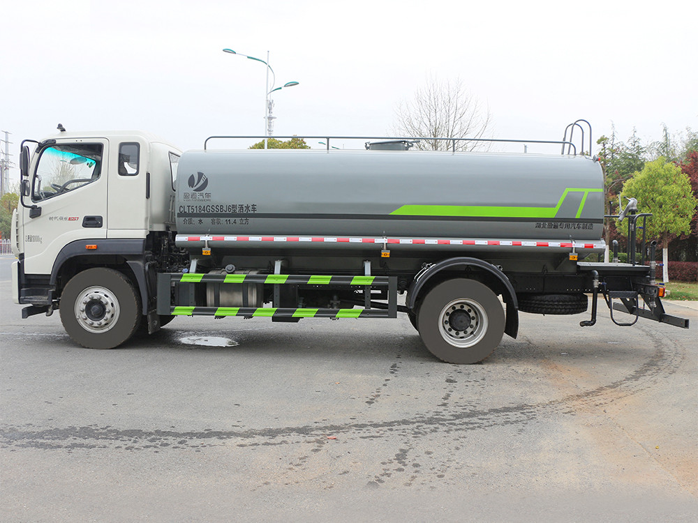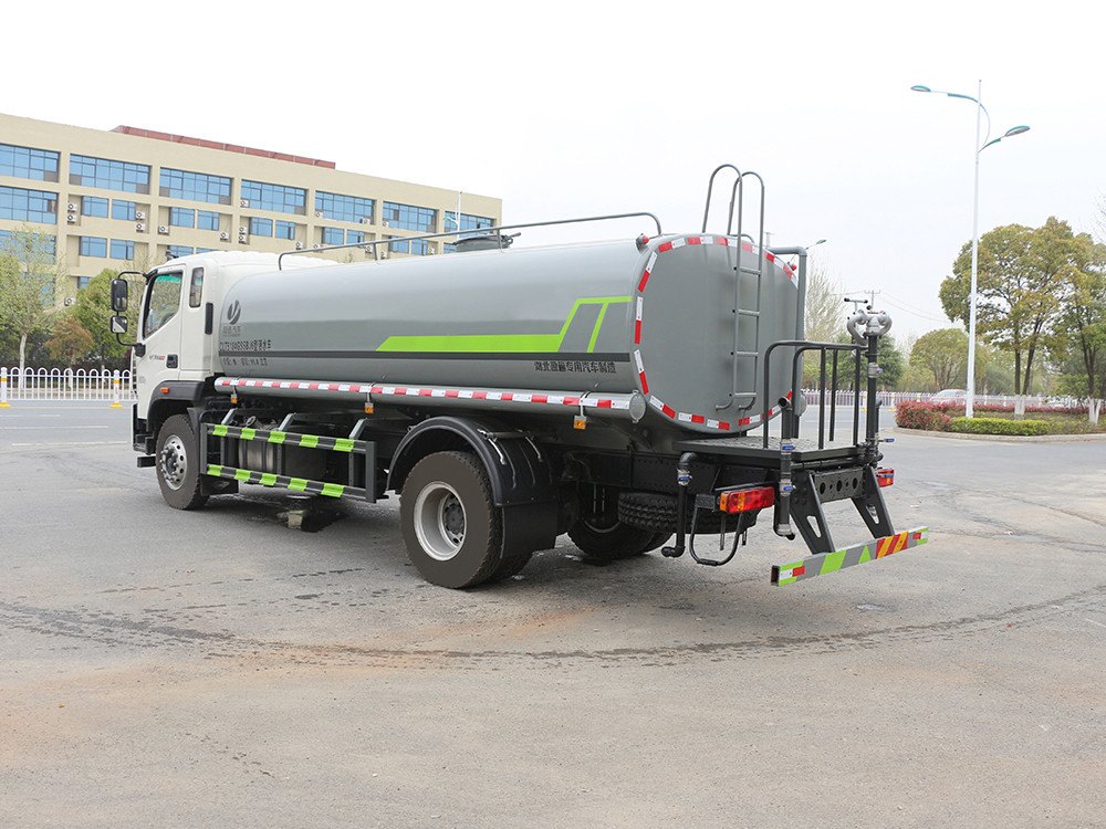 福田洒水车产品配置 1.底盘配置: 发动机玉柴 245 马力(六缸),法士特 8 档,3950 轴距,10.00 钢丝胎,前 4.5T/后 10T,中控锁,电动玻璃,助力,空调,行车记录 仪2.上装配置: 1、罐体约为 12 方, 2、边灯带电,罐体尾部上方标配 2 个红色示宽灯, 3、标配前喷为鸭嘴直冲,标配后冲,用户可根据自己的需求,来调 整对冲位置。 4、冲孔平台(承载能力加强),炮筒后盖为定制型螺栓卡扣, 5、前喷、后冲、后洒、侧喷,绿化高炮开关球阀均采用 50 大通经 不锈钢球阀, 6、新式轴承式水炮,更加耐用, 7、60-90 型水泵,