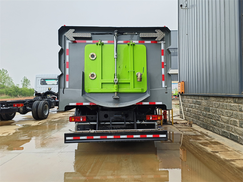 6、垃圾箱采用双层内胆不锈钢结构,容积7-8m3,内部加装过滤网板,能有效地防止树叶、塑料袋之类的轻飘物堵塞风口及灰尘的排出。内置喷雾压尘装置,大限度的利用了垃圾箱装载垃圾的空间。厢体采用倾翻卸料。