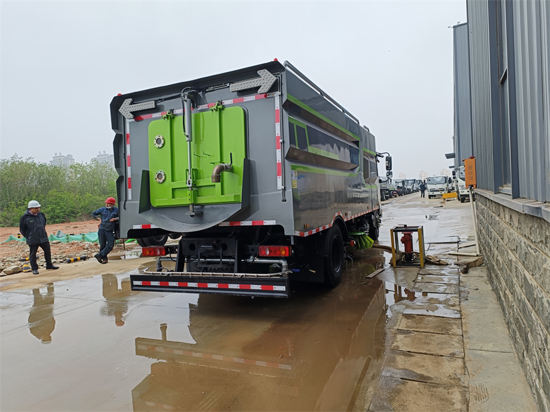9、驾驶室手动按钮式液压系统驱动左右立扫升降、左右扫盘旋转、吸嘴升降、垃圾箱后门开闭、垃圾箱倾翻复位等机械动作。